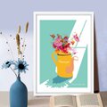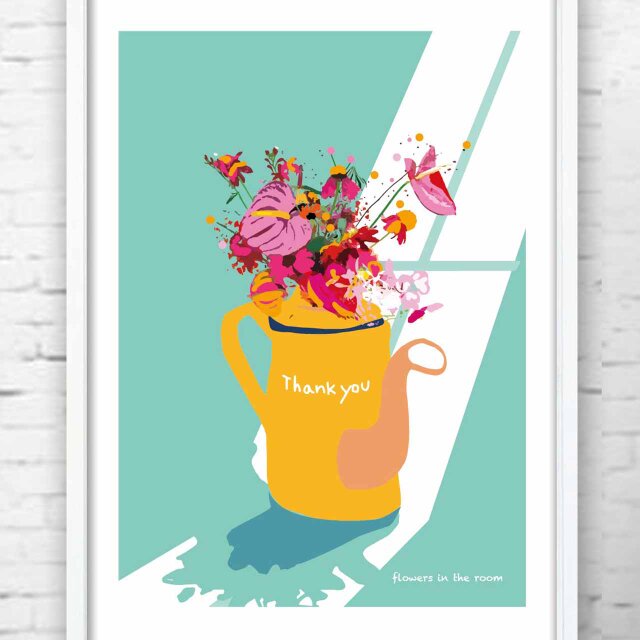 強い陽射しに輝く華やかに咲き誇る花 そんなまぶしい情景をインテリアポスターイラストにしました。