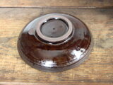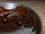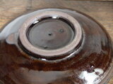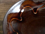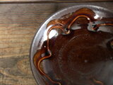 素地に化粧泥を流して模様を施してから鉄錆釉を掛けて焼成しています。
