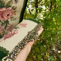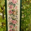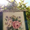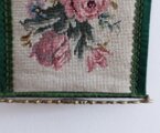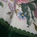 刺繍作品は緑のベルベット同色のブレードで縁飾りされています。