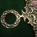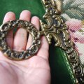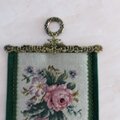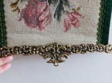 上下には刺繍作品を飾る真鍮の金具ベルプル(刺繍作品を額装せず上下吊るす)がついています。