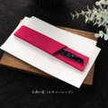 菓子切り入れは水洗いできません。汚れた場合は、軽く濡らした布で優しく拭き取ってください。(拭いた場所がすぐ乾く程度にとどめてください。水が浸み込むと布が縮んだり、接着が剥がれて破損の原因になります。)
