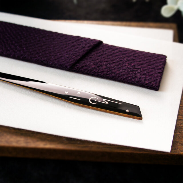 春の夜の情景「おぼろ月夜」をイメージした蒔絵(まきえ)の菓子切りです。
