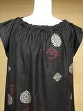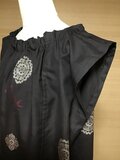首回りは顔まわりを優しく、華やかに見せてくれるふんわりとしたギャザーデザインです。