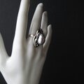 瑞々しいブルー、そしてカットがとても美しいトパーズを、優しく葉で包み込んでいるデザインです。 燻加工で葉の陰影も美しく、とても美しいリングでした。