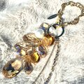 大粒のガラスパーツを中心に、すべて染色工程から仕上げたチャームです。