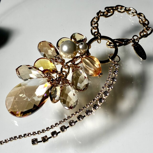 大人可愛いキラキラ光雫バッグチャーム ベージュ