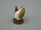 リングのサイズは12.5号、重さは22g、最大幅は30mm、手のひら側の幅は6mm、金属部分は純銀です。