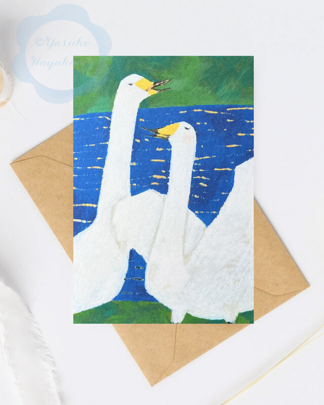 (74)湖と2羽のガチョウ ポストカード 3枚セット