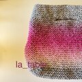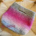 カラフルな糸をぐるぐると編み進めてバッグに仕立てました。