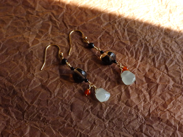 使用している天然石(スモーキークォーツ、ブラックスピネル、ブラックオニキス、プレナイト、カーネリアン)