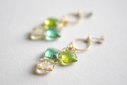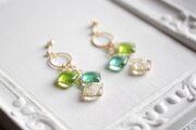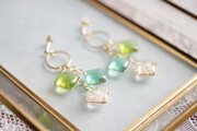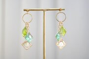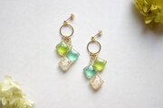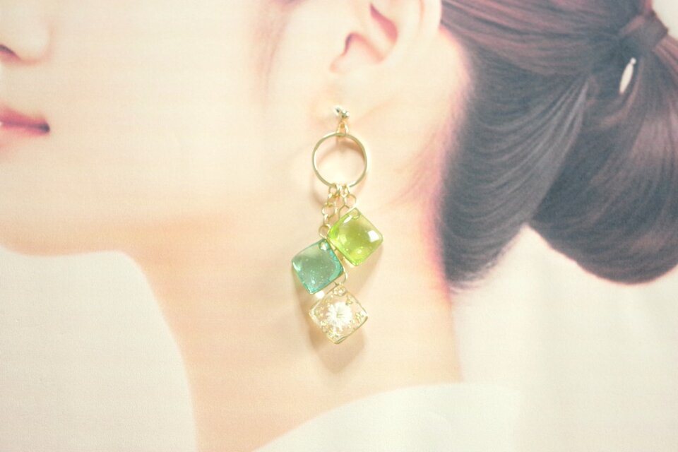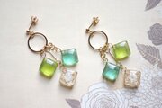レジンアート スクエアモチーフとリングパーツのピアス〈萌えいづる緑〉