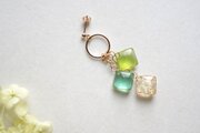 一つは緑、一つは黄緑、そして三つ目にはお花と金箔を封じ込めたスクエアパーツを作り、リングパーツに吊るしました。