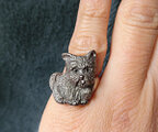 ヨークシャテリアのリング(ブラックダイヤモンドの瞳)・シルバー製/日本製
