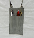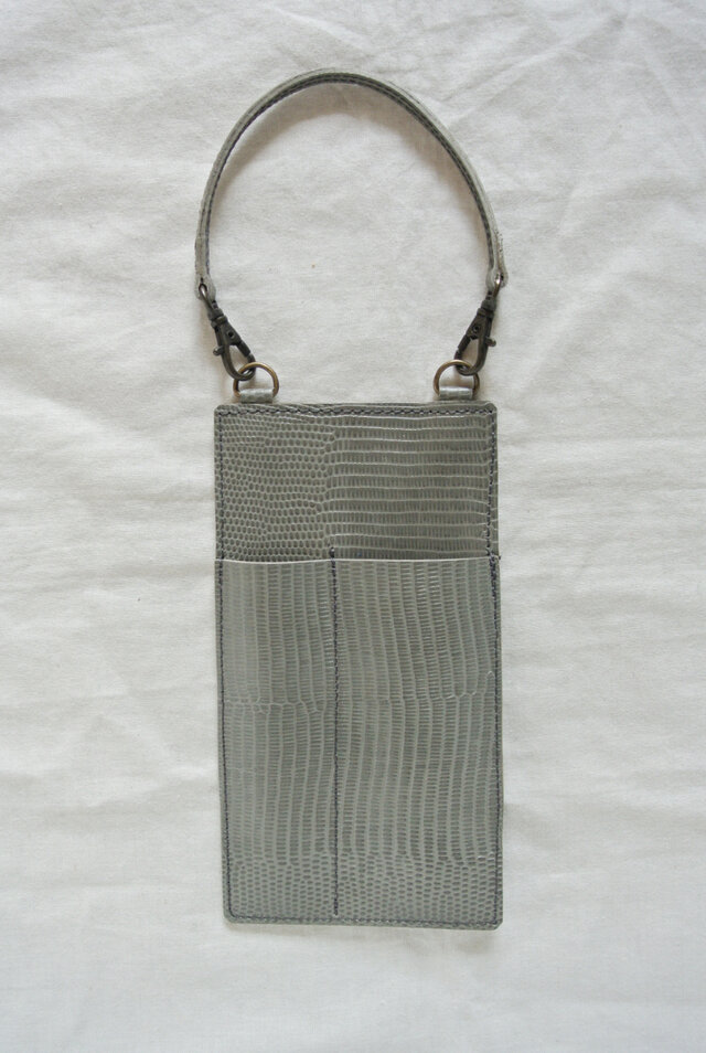 グレイのやや硬めのリザードの型押しの革を使ったしっかりとしたペンホルダーです。