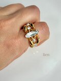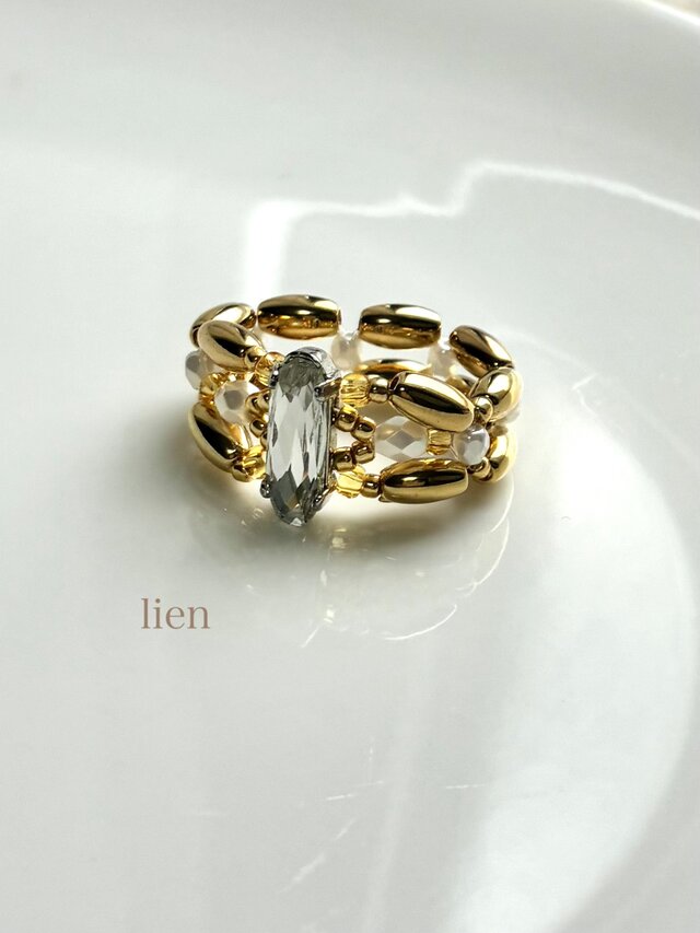スワロフスキーやチェコビーズ、メタルビーズなどを使って作った指輪になります。