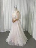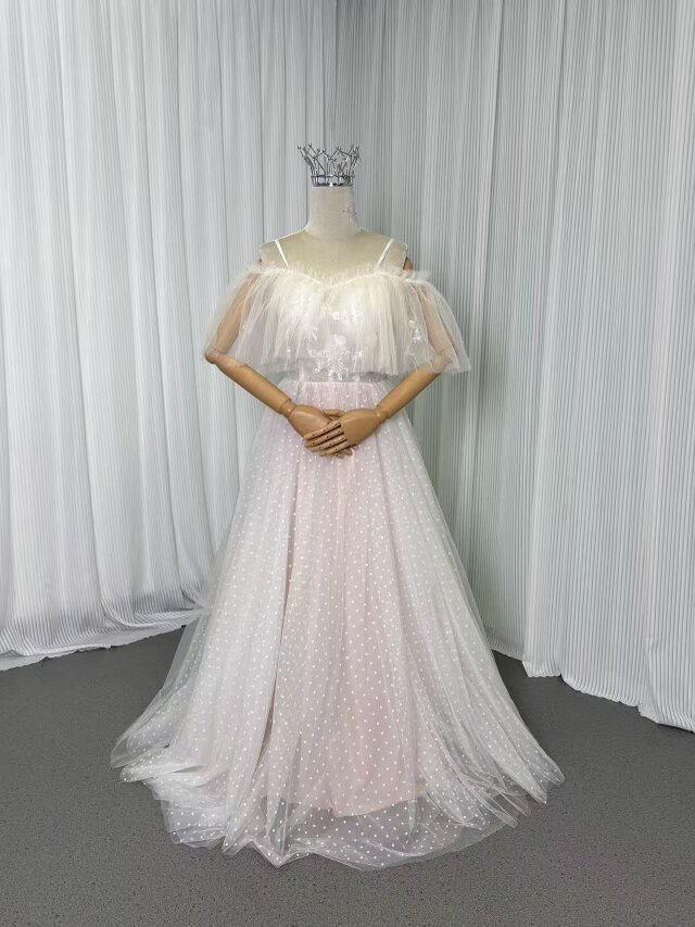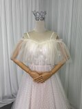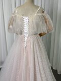 パーティードレス シャンパン色 キャミソール オフショルダー ふわふわドレス 編み上げ ドットドレス 披露宴