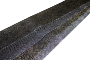 【B面:クロコ】洗練されたエキゾチックな重厚感 ワニ革の質感を繊細な織り技術で再現したクロコ柄。幾何学的で規則正しい鱗模様は、都会的でクールな印象を与えます。光沢を抑えたシックな仕上がりで、大人の色気と落ち着きを演出します。