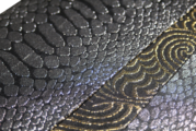 「クロコ」面: デニム着物やワントーンの御召(おめし)に合わせて、都会的でラグジュアリーなスタイルに。