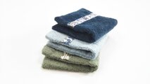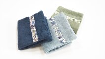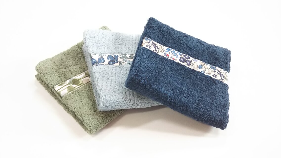 肌触りの良いタオル生地のハーフハンカチです。リバティタナローンのラインがアクセント。3色セット。