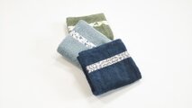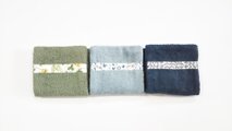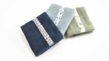 肌触りの良いタオル生地のハーフハンカチです。リバティタナローンのラインがアクセント。3枚セット。