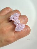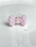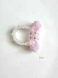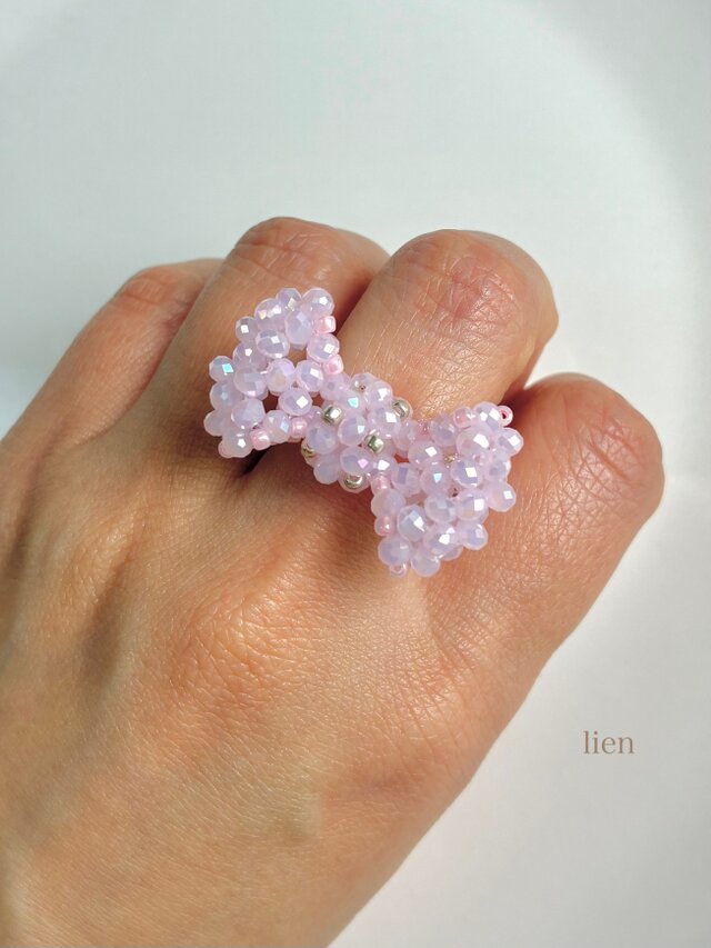 ガラスビーズや丸小ビーズを使って作ったリボンモチーフの指輪です。