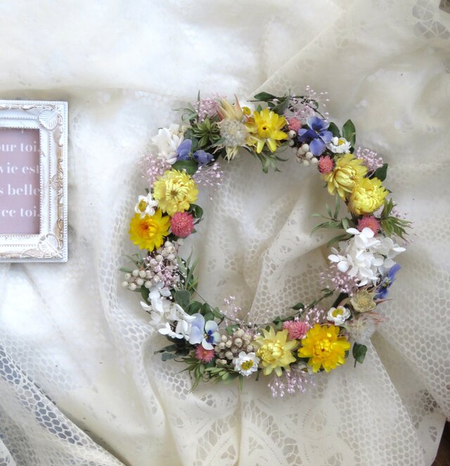 再販してくださりありがとうございました。本当に春風が通り抜けるような 優しくて心が温かくなるリースだと 思います。