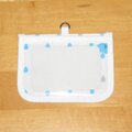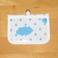 白地に青と銀で、雲と雨をモチーフにした絵が描かれた生地で作りました。
