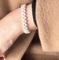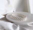 スワロフスキー社製のクリスタルパールを使用しているのでイミテーションながらもあこやパールに負けない程の美しさ。