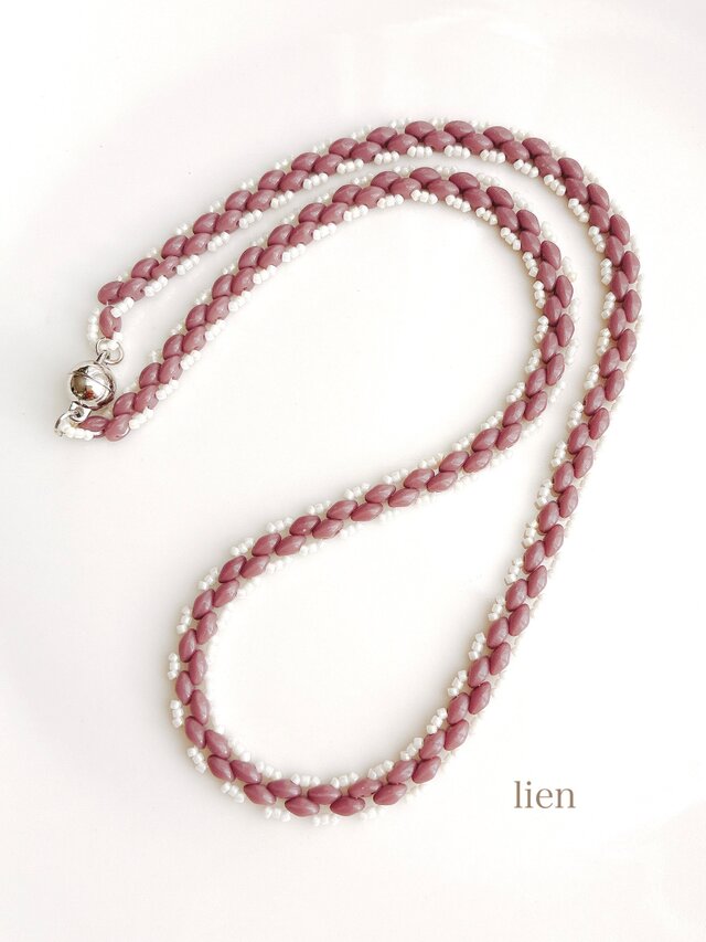 ツインビーズと特小ビーズを使って作ったビーズネックレスです。