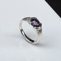 パープル スピネル オーバル1.58ct テクスチャ樹 印台 シルバーSV925リング
