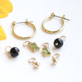 宝石質ペリドット 天然石チャーム3点付き フープピアス / アレルギー対応 — Dress up —
