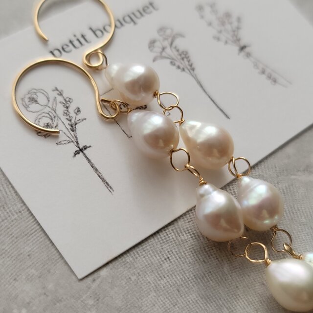無事に手元に届きました。 包装もとても丁寧で、ピアスのデザインも本当に素敵でした。 透明感のある爽やかさがありつつ、上品な雰囲気もありとっても気に入りました! 早速つけてみたところ石の大きさや長さも丁度良いバランスで、まとめ髪にもおろした髪にもどちらにも似合うので、身につけると気分があがる感じがありとても嬉しいです^ ^ 素敵なピアスをありがとうございました。