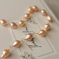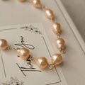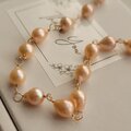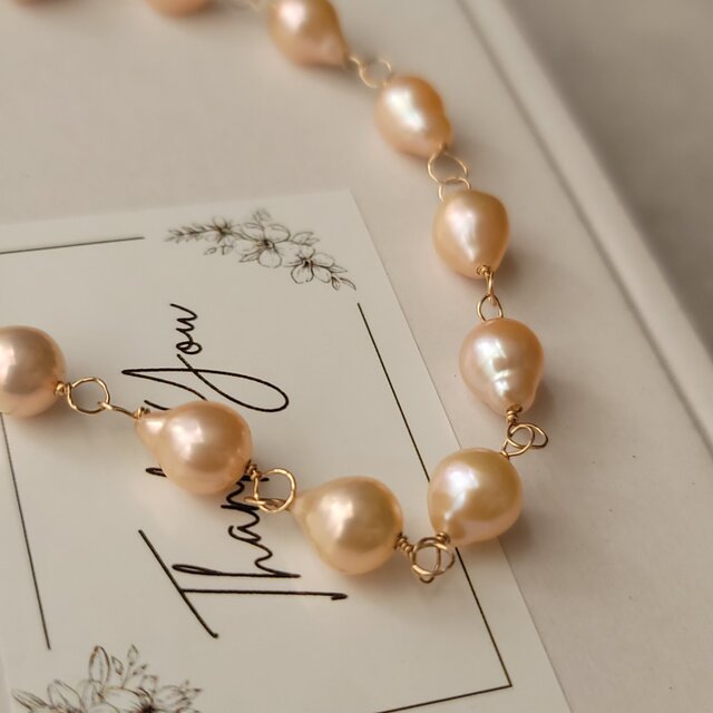 天然のオレンジカラーの淡水パールを一粒ずつ丁寧に繋ぎ、