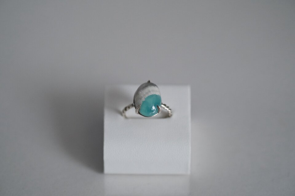やわらかなミントグリーンが印象的な、天然スミソナイトのSV925リングです。