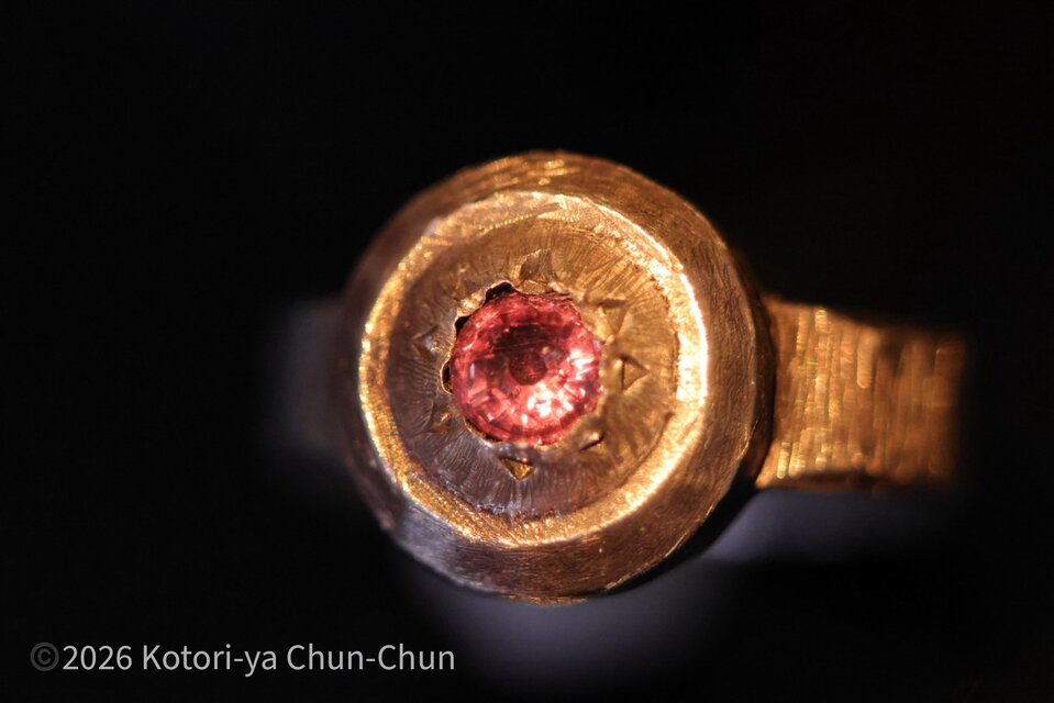 本来はK10、K18、Pt900クラスの良い地金に相応しい石ですが、イベントでお客さんたちに見せたくて作ってしまいました。