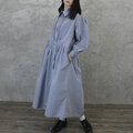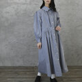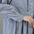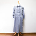 【完全一点物】ギャザーワンピース(ベージュストライプ)軽い素材のワンピースで本格的な春が待ち遠しい程です♪ ボタンも可愛くてびっくりでした! 細部まで拘って作られているのがとても分かるワンピースでした^^