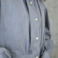 胸元や切替部分にたっぷりギャザーを入れ、立体的なシルエットに仕上げました。