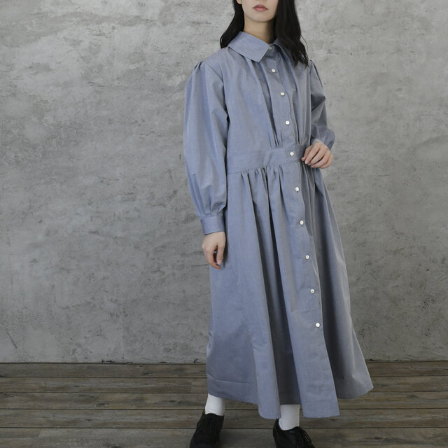 【完全一点物】ゴージーギャザーワンピース(アイスブルー)