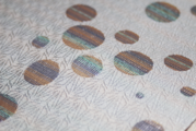 【B面:水玉】グラデーション箔が織りなす幻想的な輝き 一見シンプルな水玉模様ですが、一つひとつのドットに**「グラデーション箔」**を使用しています。光の当たる角度によって色が移ろい、水面に反射する光のような幻想的な輝きを放ちます。上品さとモダンさを兼ね備えた、洗練された大人の面持ちです。