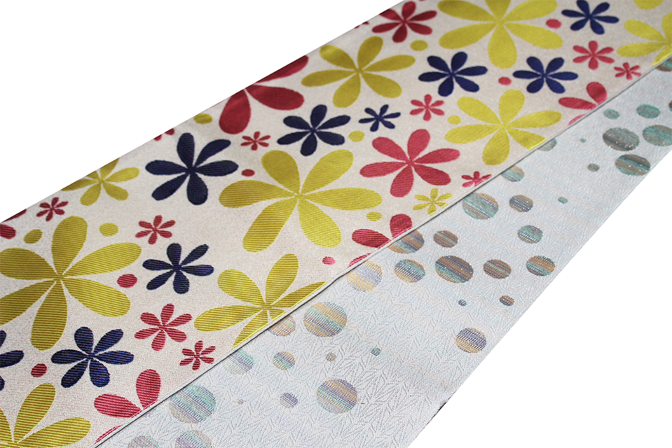 仕立て リバーシブル仕様(A面:マルチカラー花 / B面:グラデーション箔水玉)