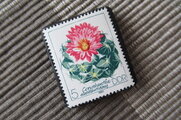 切手の中のお花を見て春の到来を待っているところです。いつも素敵なブローチをありがとうございます。
