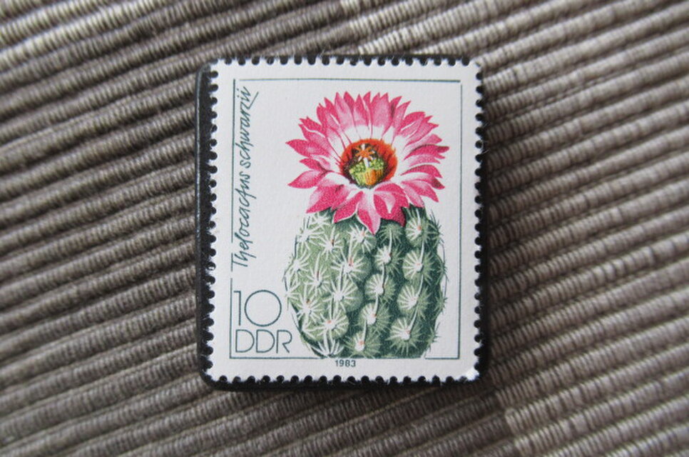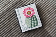 切手の中のお花を見て春の到来を待っているところです。いつも素敵なブローチをありがとうございます。