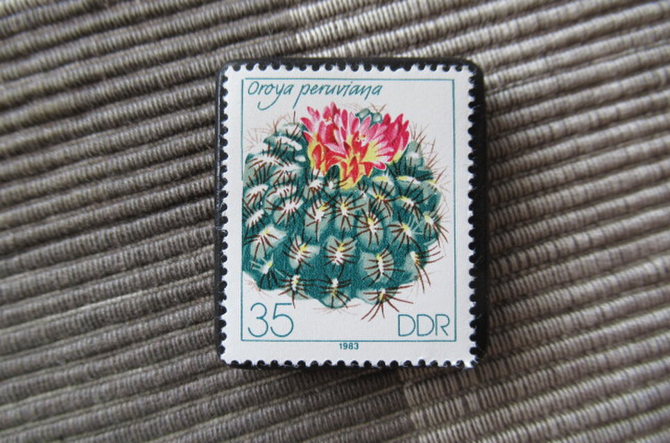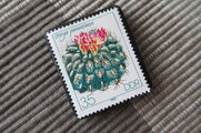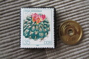 切手の中のお花を見て春の到来を待っているところです。いつも素敵なブローチをありがとうございます。
