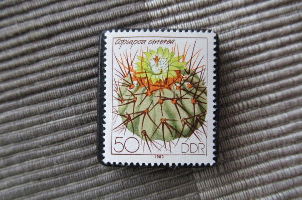 切手の中のお花を見て春の到来を待っているところです。いつも素敵なブローチをありがとうございます。