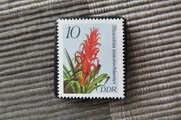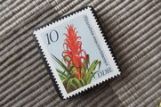 切手の中のお花を見て春の到来を待っているところです。いつも素敵なブローチをありがとうございます。