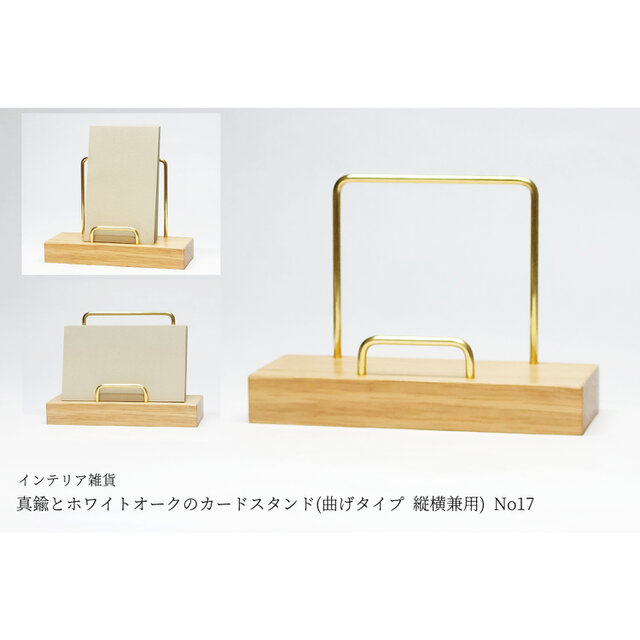 真鍮とホワイトオークのカードスタンド(曲げタイプ 縦横兼用) No17