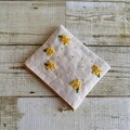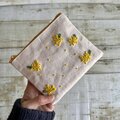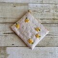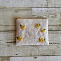 大人かわいい手刺繍ミモザのフラットポーチ(ポケットティッシュサイズ) 国産帆布 コットン 小物入れ ギフト 春