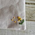 上質な国産帆布にミモザをたっぷり手刺繍しました。