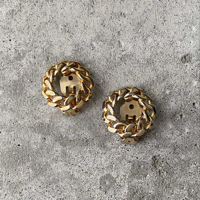 レトロモードな雰囲気のヴィンテージイヤリング。チェーンをモチーフにデザインされたお洒落なデザイン。シンプルながら個性的な雰囲気で古着やレトロスタイルのアクセントにおすすめです。
