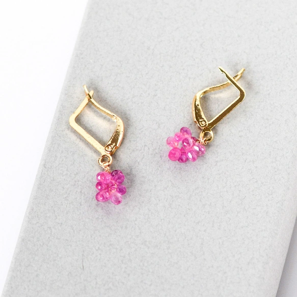 片側に約10粒のピンクサファイアドロップを丁寧に連ね、